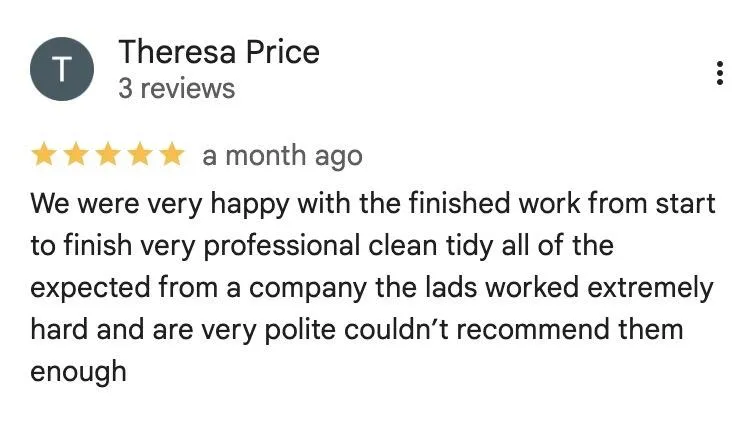 We keep disruption to a minimum and always clean up thoroughly after each day’s work. Your property will be left clean and tidy once the job is complete.